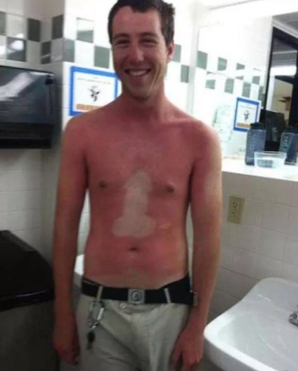 De här solbrännorna är av värsta sorten. Tragikomiskt att se. Se upp så du inte blir lika bränd av solen.